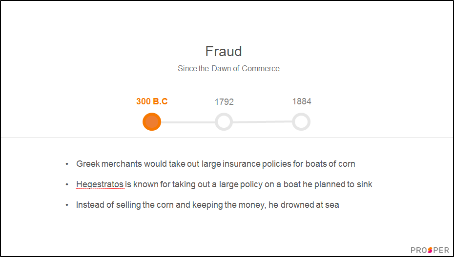 During our conversation he shared the decks from 3 different keynotes he's recently delivered - at Lendit, AltFi Australasia, and the ACFE Fintech Fraud Summit. He mentioned that the latter has had huge interest, as it covers the underbelly of the industry - fraud - that nobody really wants to talk about. He launched the presentation with amusing but poignant examples of 3 historic fraudulent acts, with the first dating back to an example from Greek merchant banking dating back to 300 BC.