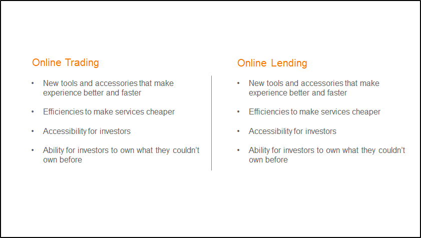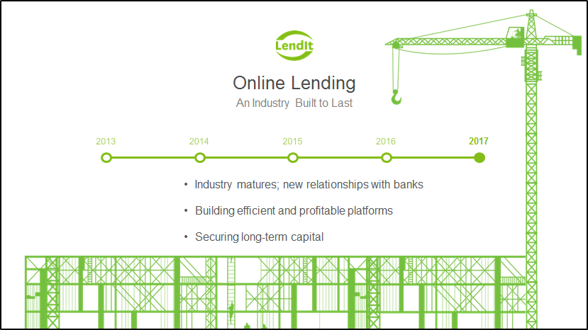 In contrast, the speech Ron delivered at Lendit, which was attended by over 5,000 people this year including large contingencies from Asia and the Middle East, had an entirely different tenor. Amongst the topics discussed was the industry's birth and growth since 2013, year by year, the ways banks and online lenders are collaborating on growth, and a snapshot of Prosper's returns for investors.